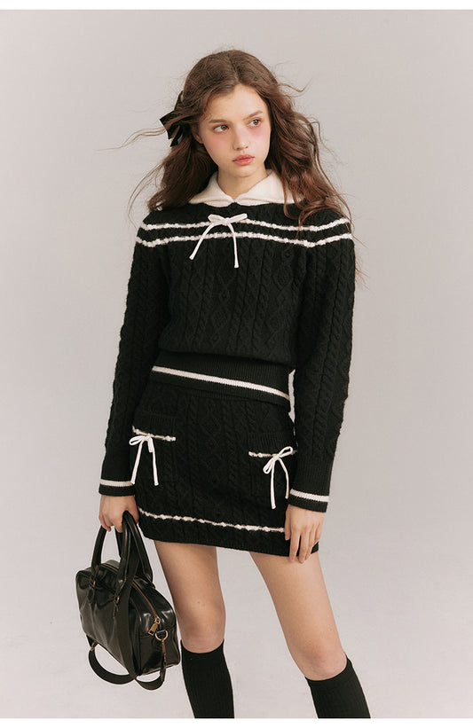 Slim Fit Ribbon Design Knit Setup