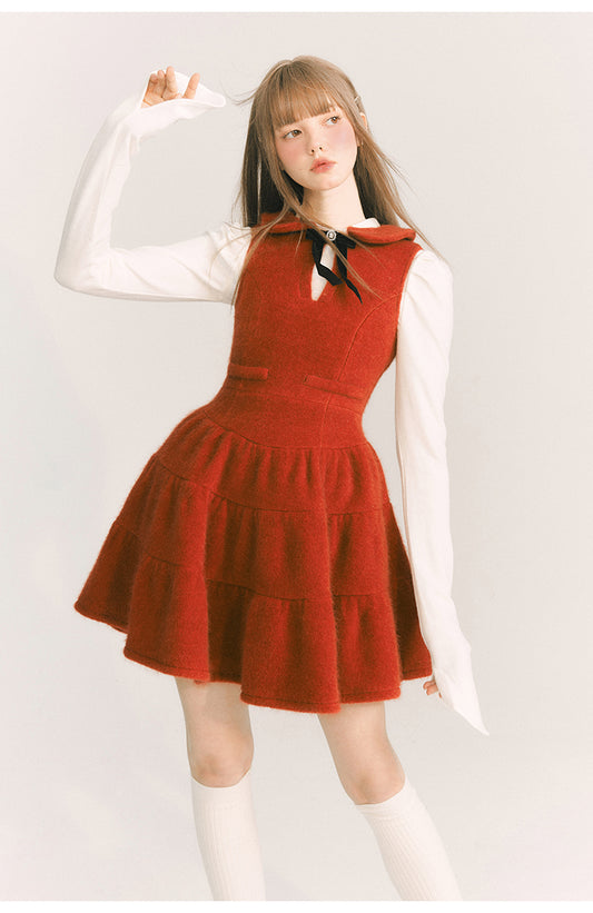 Front Ribbon Sleeveless Short Length Dress