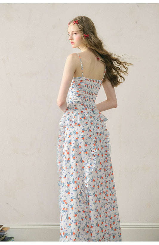 Square Neck Suspender Floral Dress