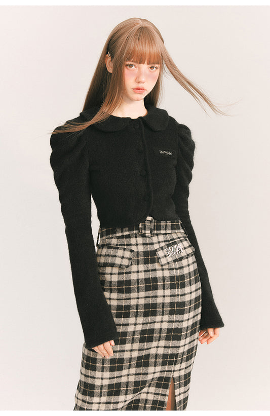 Slim Fit Short Length Front Button Knit Cardigan