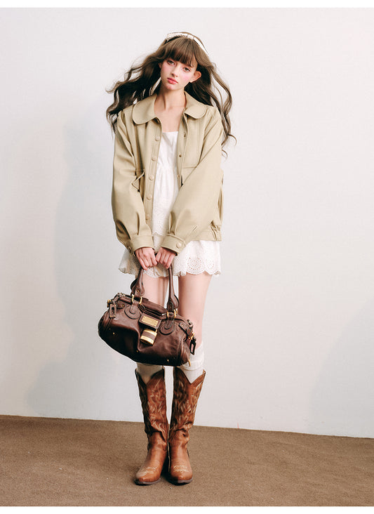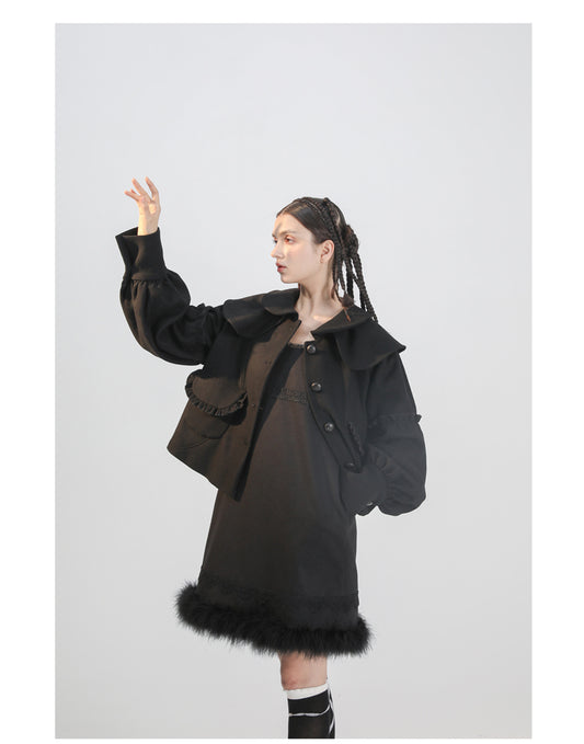 Short Length Puff Sleeve Jacket & High Waist Long Ribbon Skirt Setup