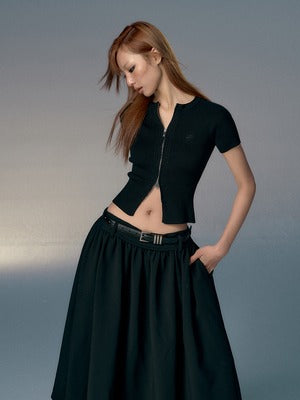 Slim Fit Short Sleeve Zipper Knit