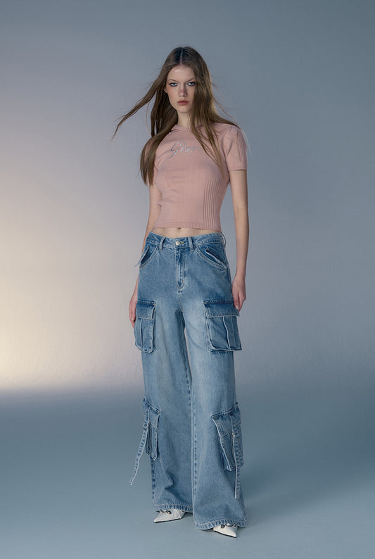 Multi-pocket Washed Loose Straight Denim Pants