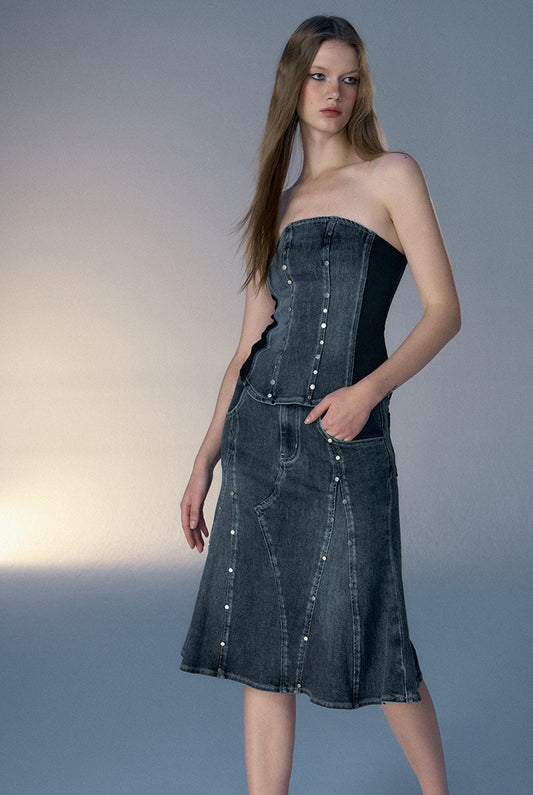 Retro Denim Tube Top & Retro Denim Skirt Setup