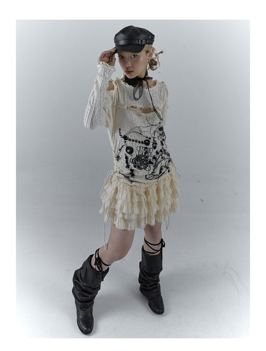 Retro Frilled Lace Jacquard Skirt