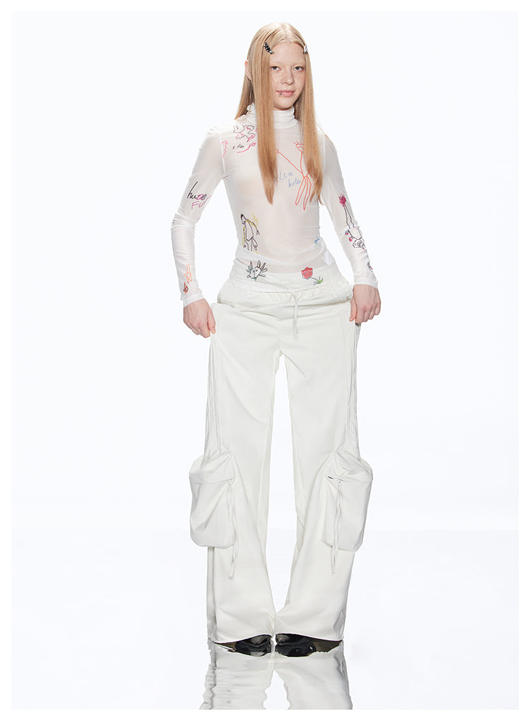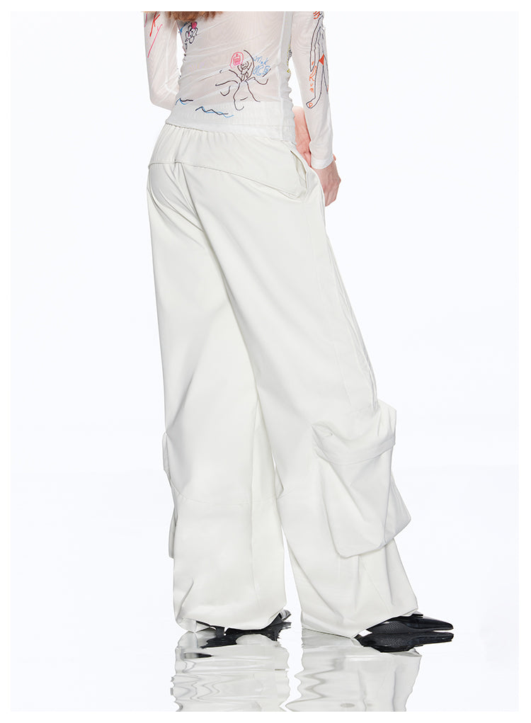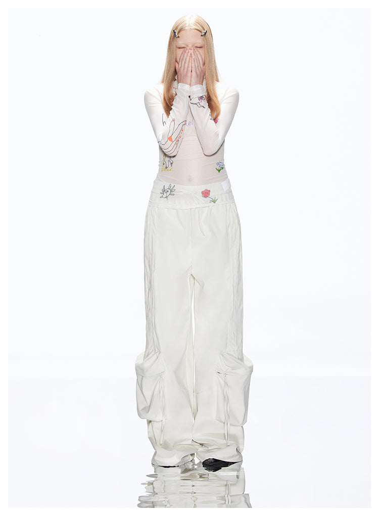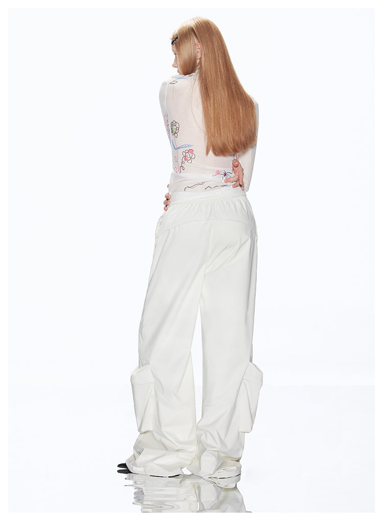 Loose-fit multi-pocket white cargo pants