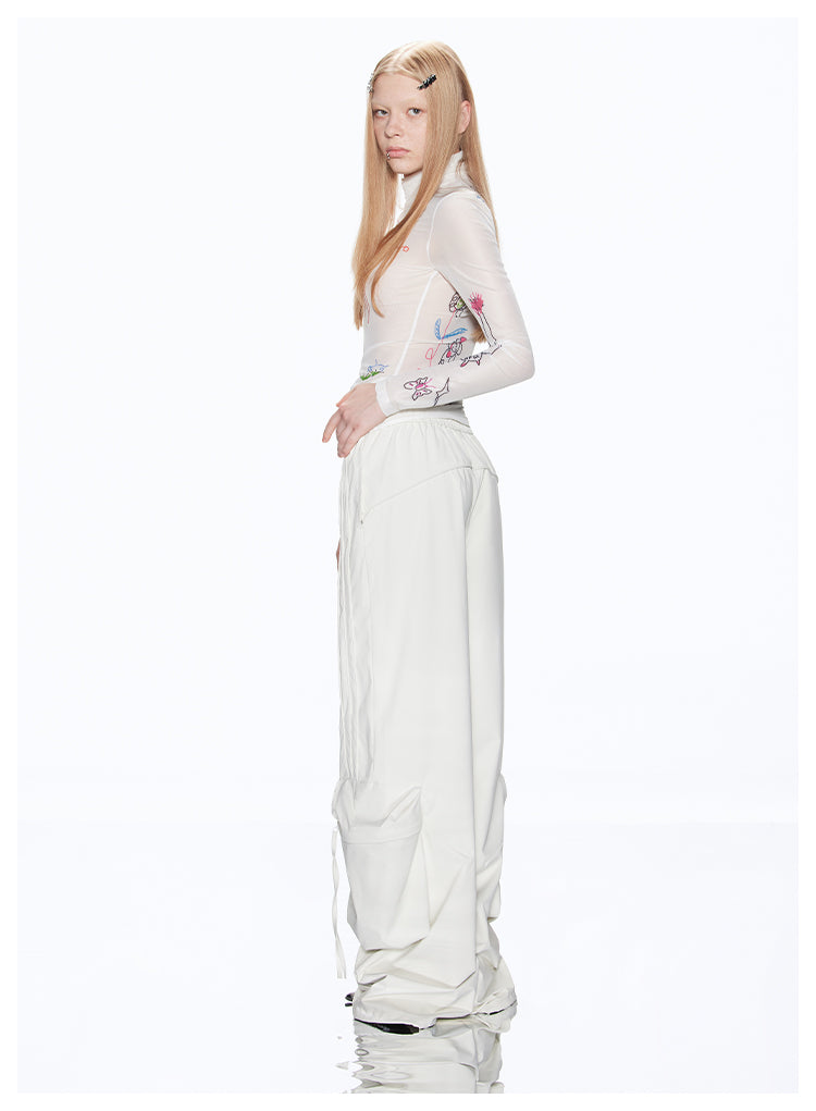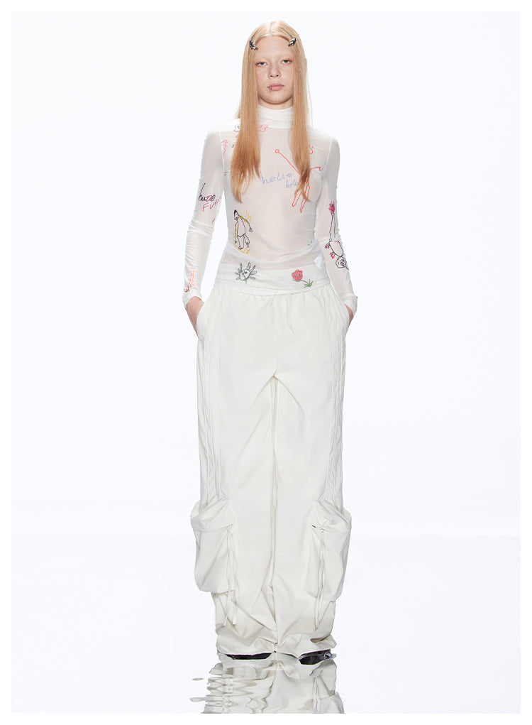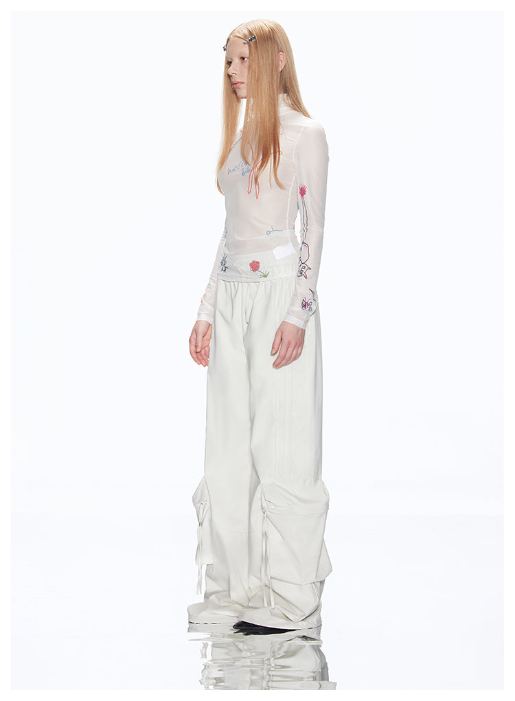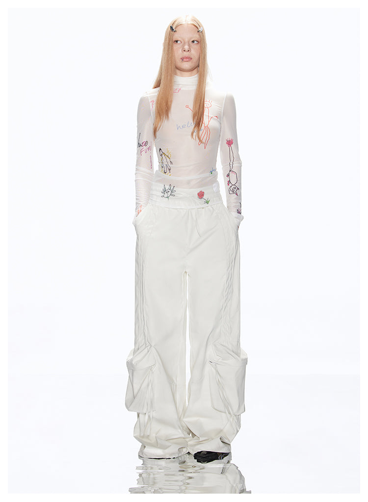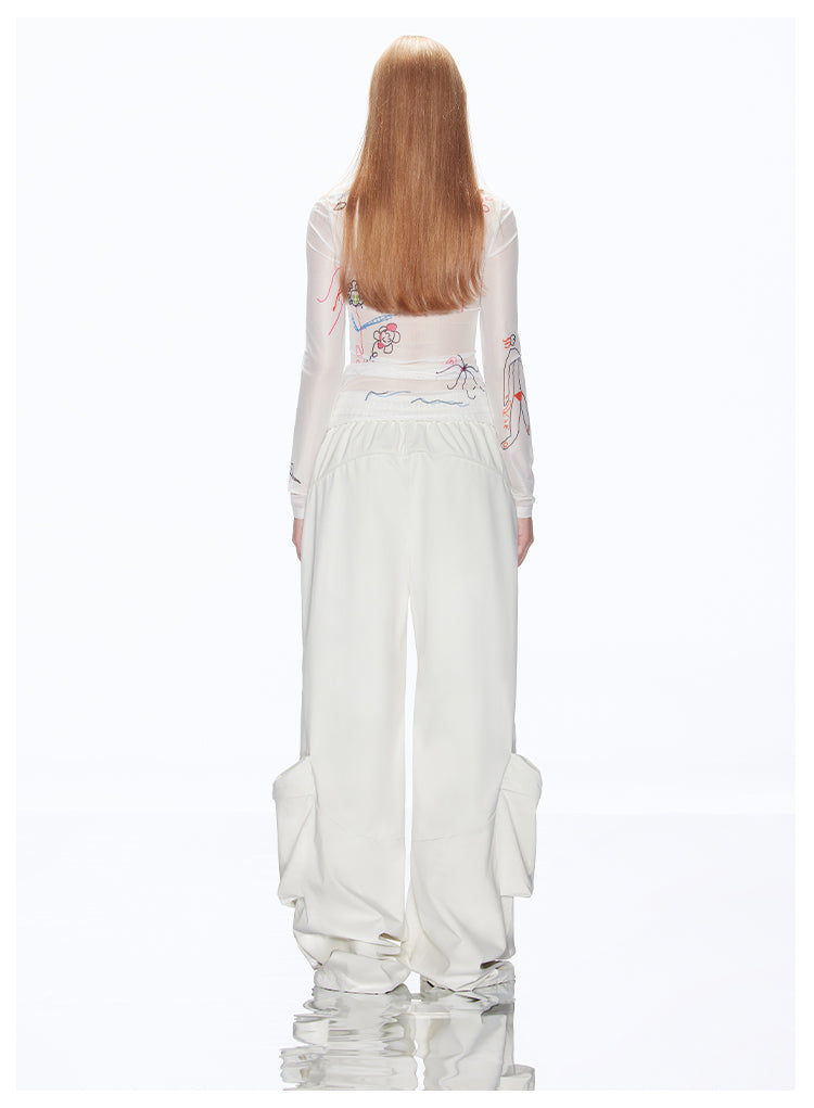 Loose-fit multi-pocket white cargo pants