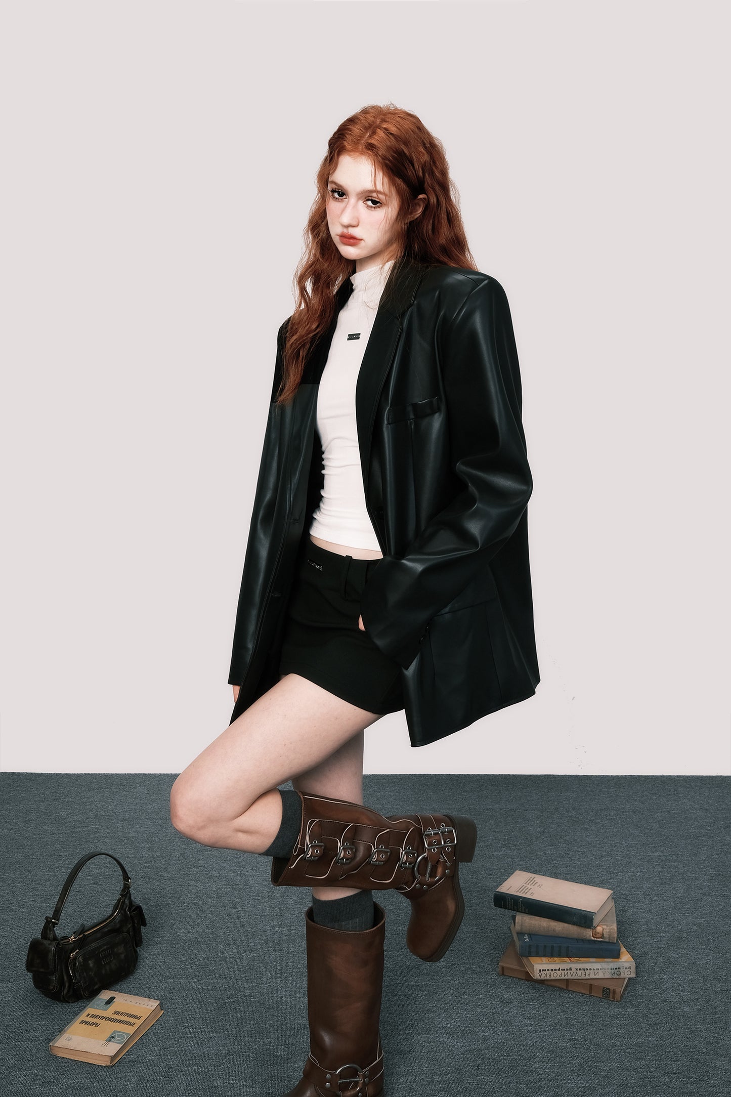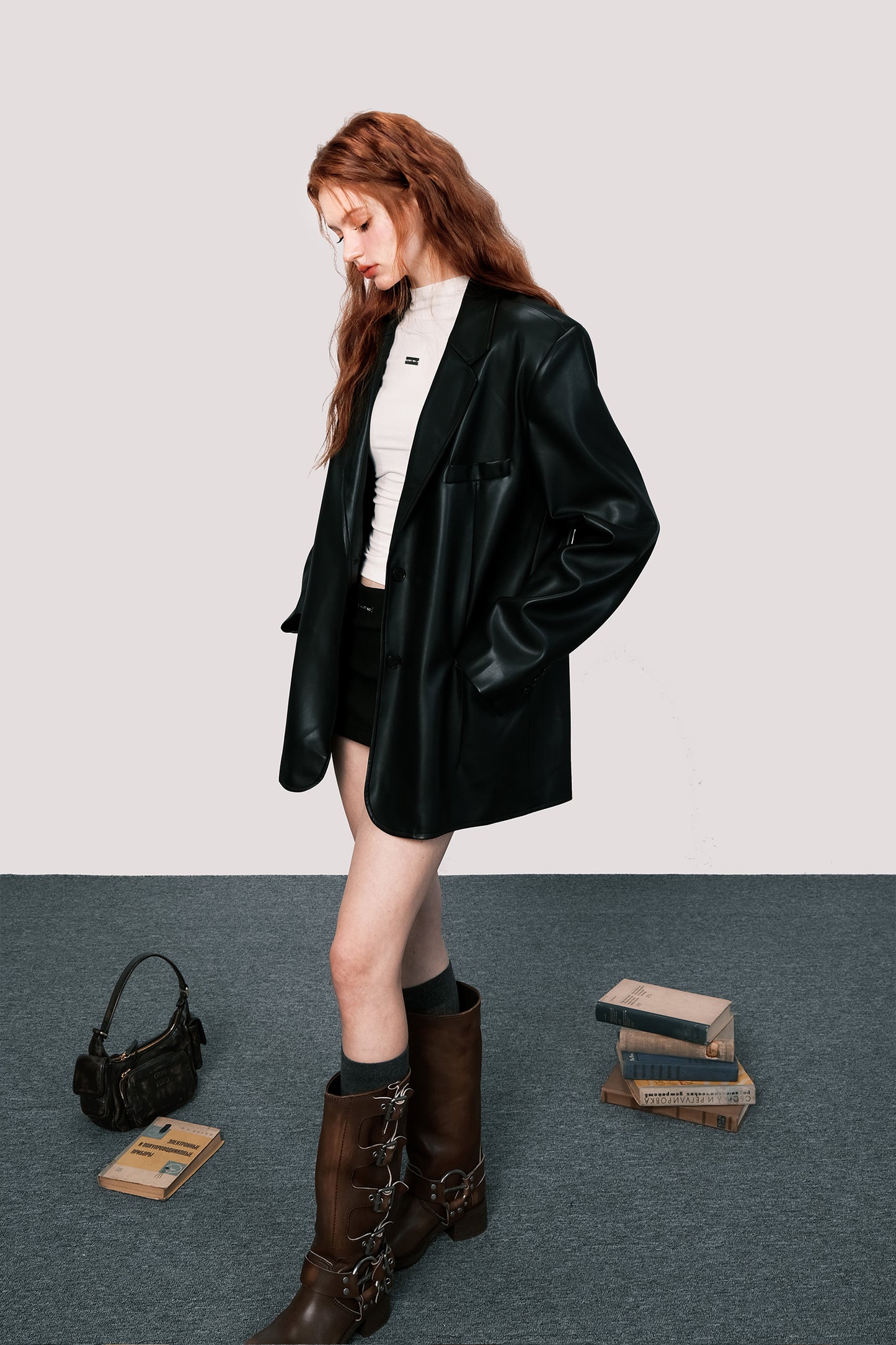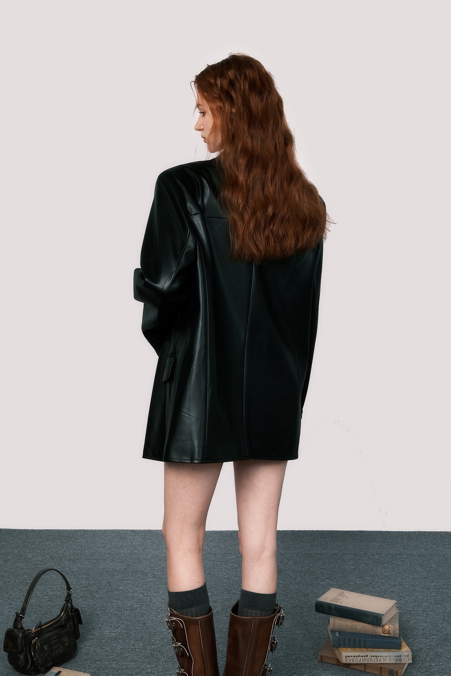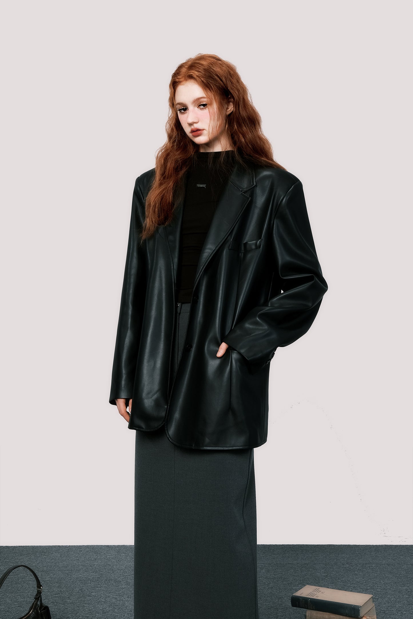 Oversized retro leather suit jacket