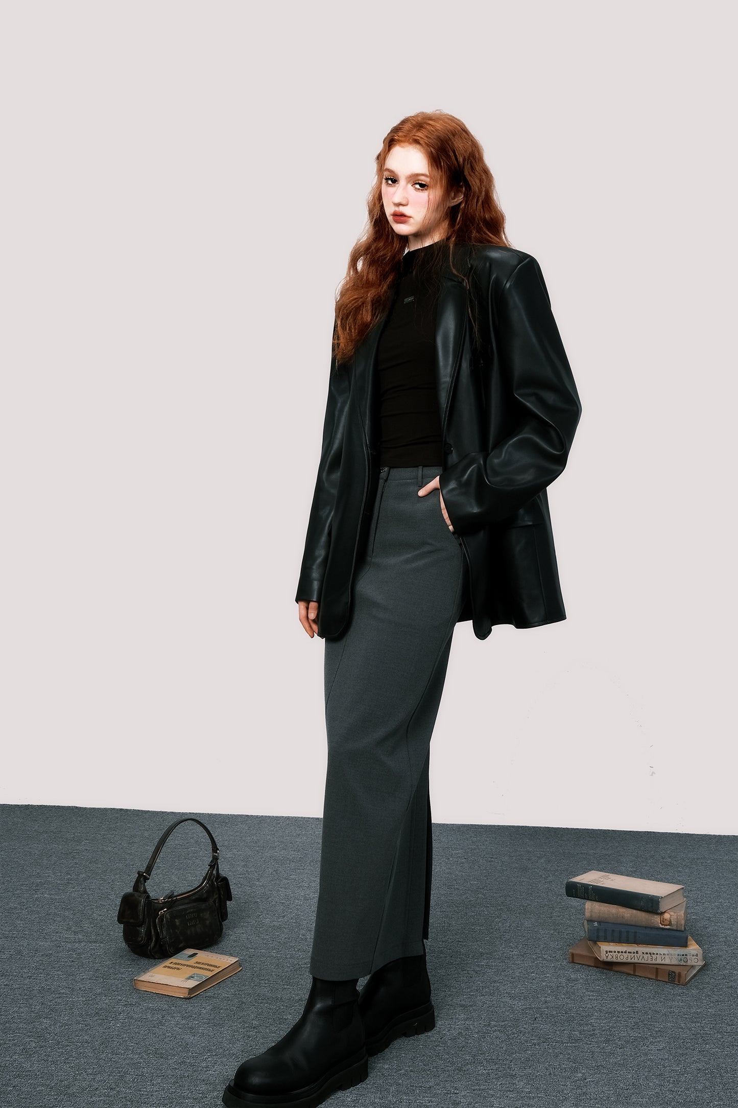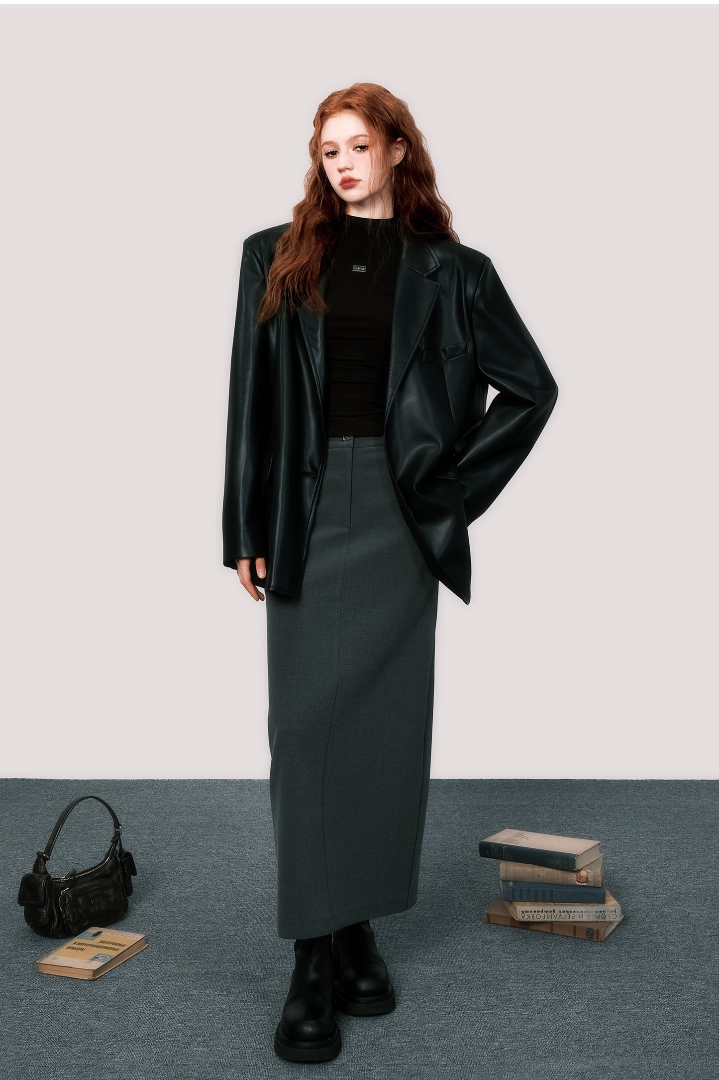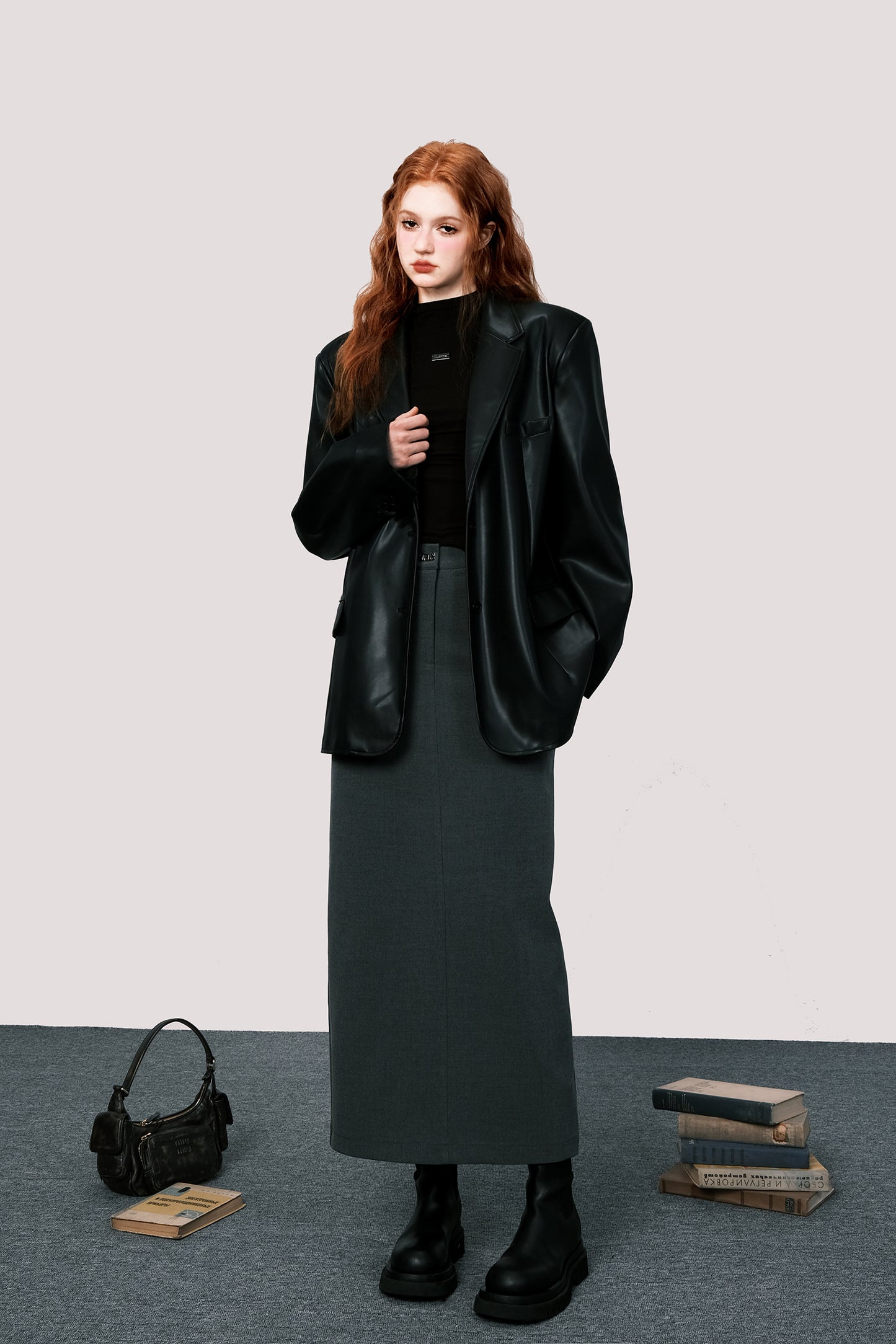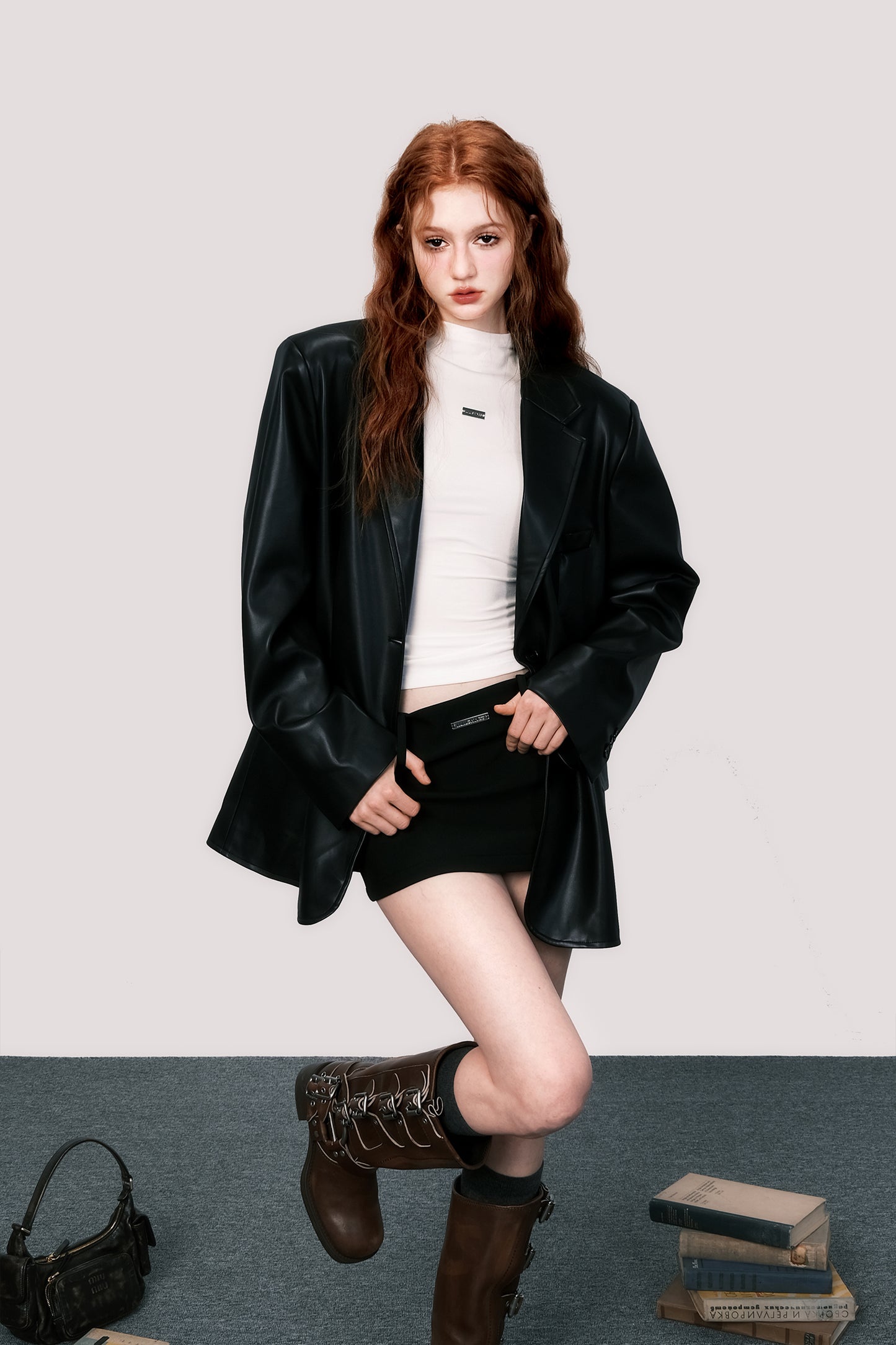 Oversized retro leather suit jacket
