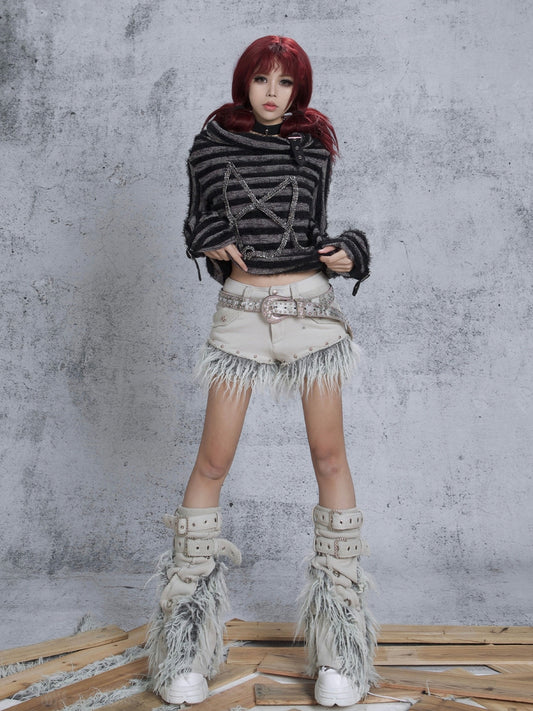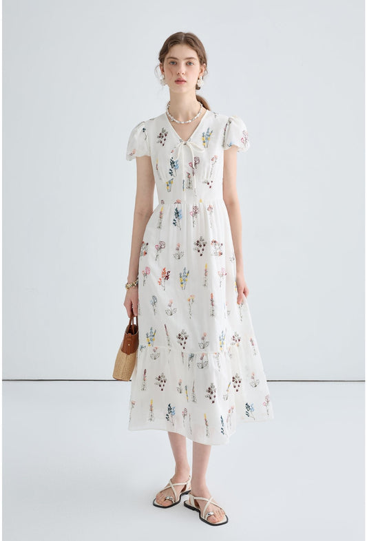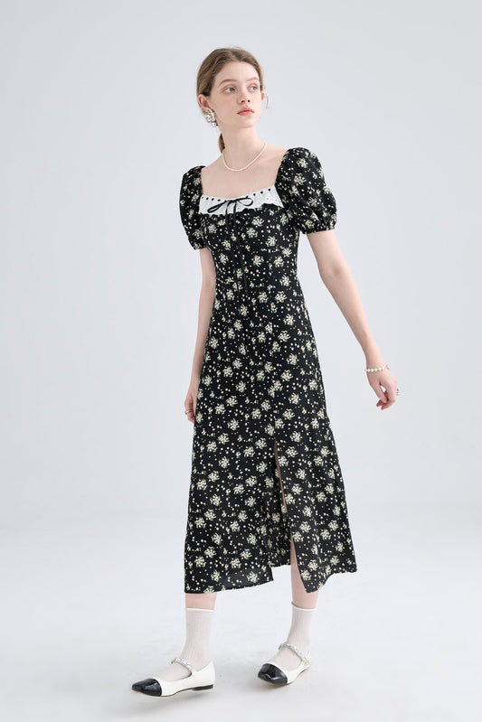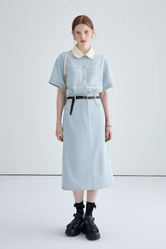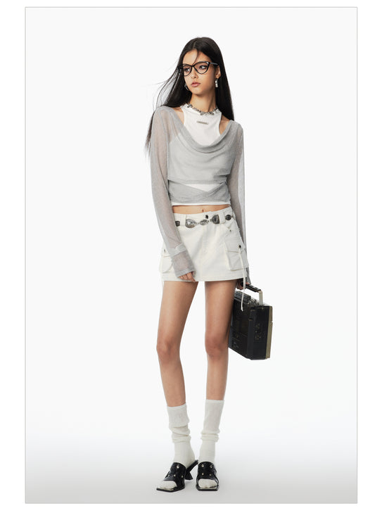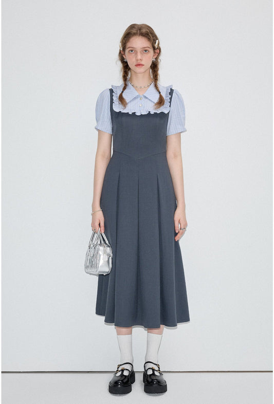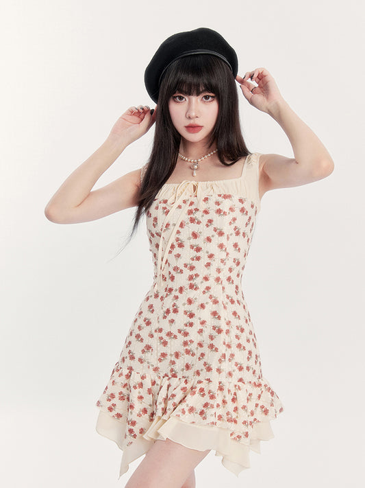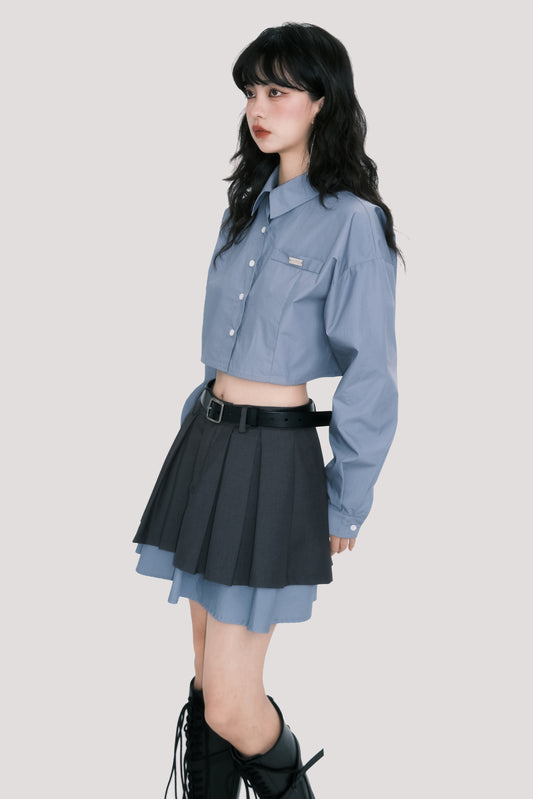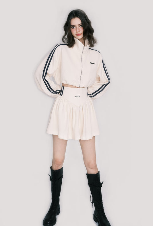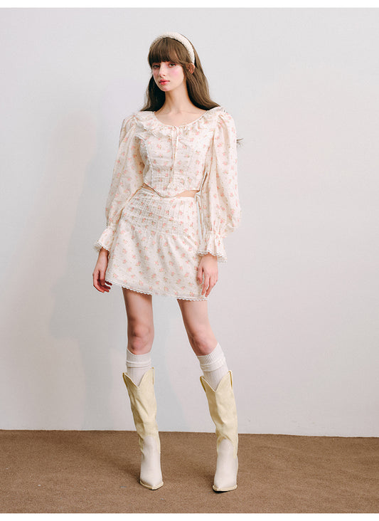 Rose Round Neck Ruffle Blouse & Short Length Skirt Set-Up